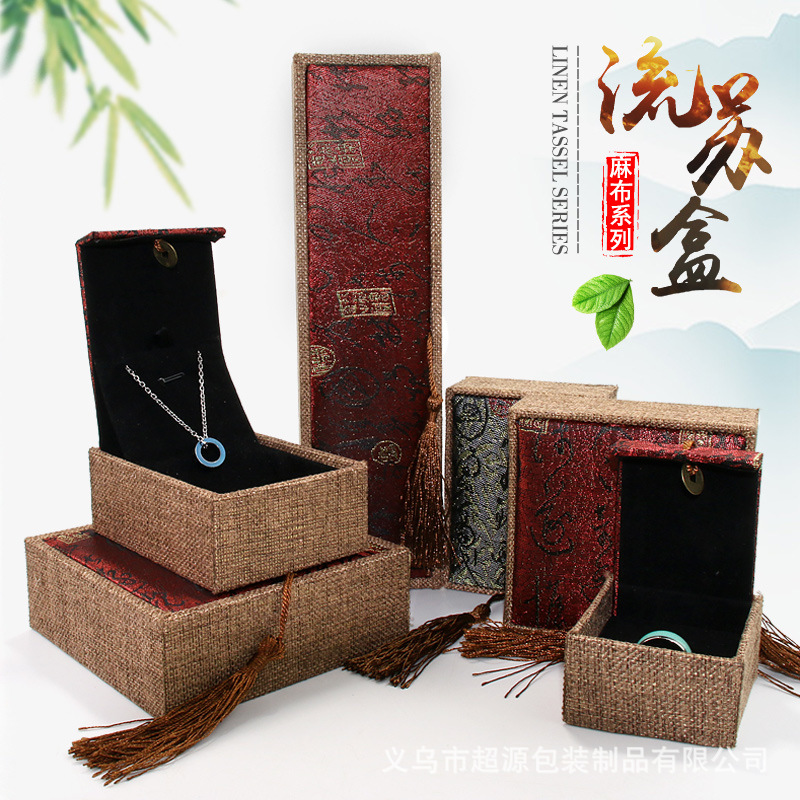 フリンジ麻布手串数珠箱108仏珠ジュエリージュエリー箱ブレスレットペンダントネックレス木箱包装卸売り