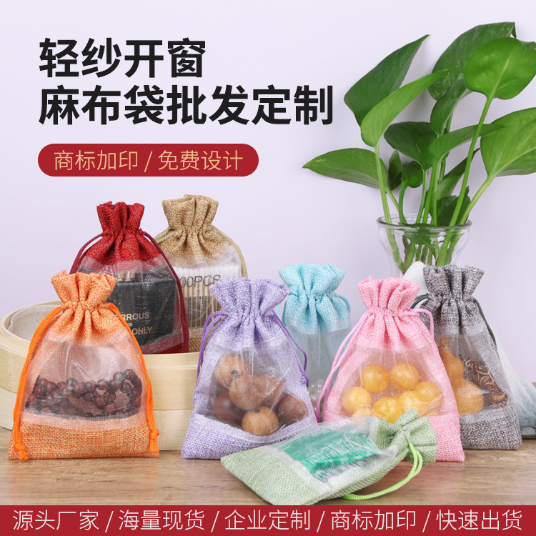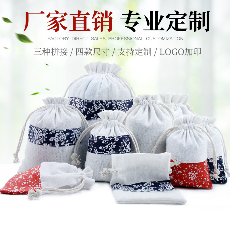 超源特価販売促進10*13青花は麻袋宝飾品バッグ卸売り束袋仏珠をつなぎ合わせる
