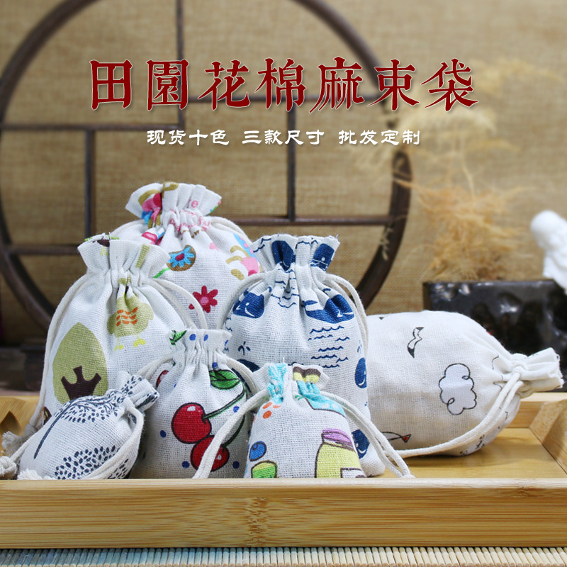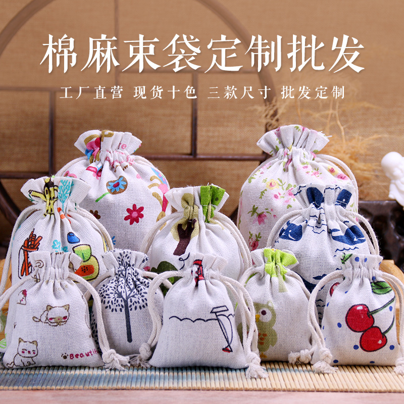 プリント綿麻巾着袋空香嚢ポケットアクセサリーギフト袋プリント綿布袋卸売り