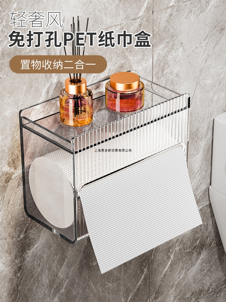 バスルームティッシュボックス壁掛けパンチフリー防水トイレットペーパー収納ボックス家庭用透明トイレットペーパーボックス