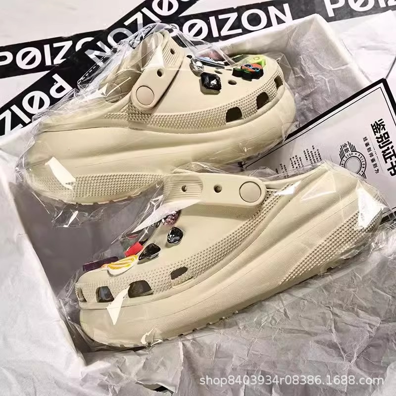 ココナッツの穴の靴の女性のタイプの2025莆田の新型の夏の外は厚い底の滑り止めのevaの包頭の砂浜のサンダルを着ます。