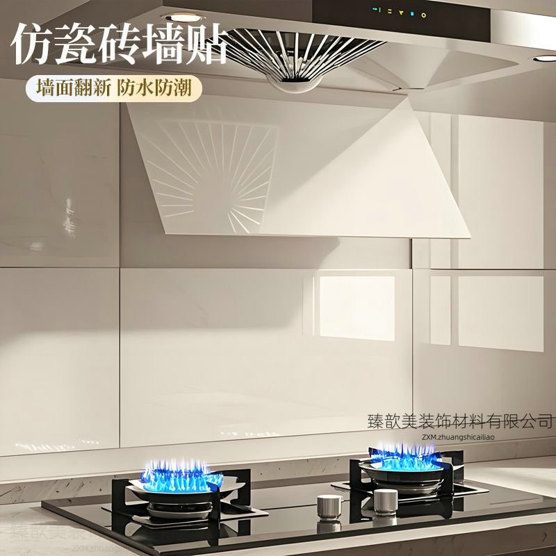 肌感はタイルの壁に似せて、防水防湿壁紙の壁板を貼って、自分で壁を飾って、醜いアルミニウムのプラスチック板を作り直します。