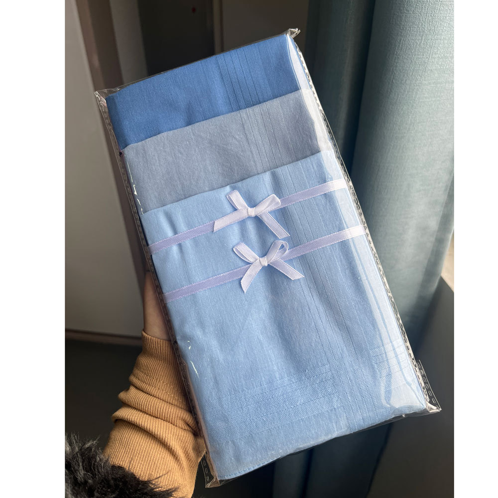 40cm青系綿サテン無地ハンカチ四色配色綿織りハンカチ角巾現物