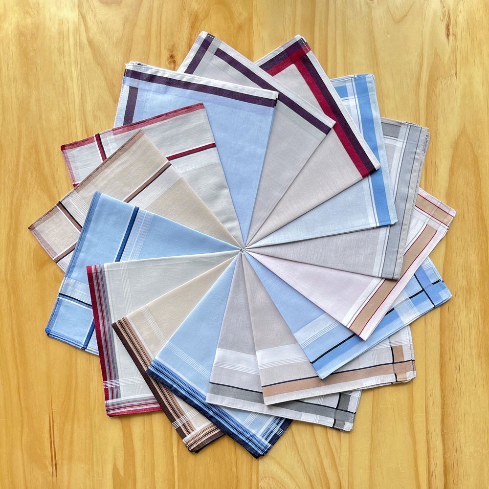 古い工場の直接販売の経典のタイプの43cmの薄い色のストライプの綿の男性の色はハンカチの純綿のポケットのタオルを編みます