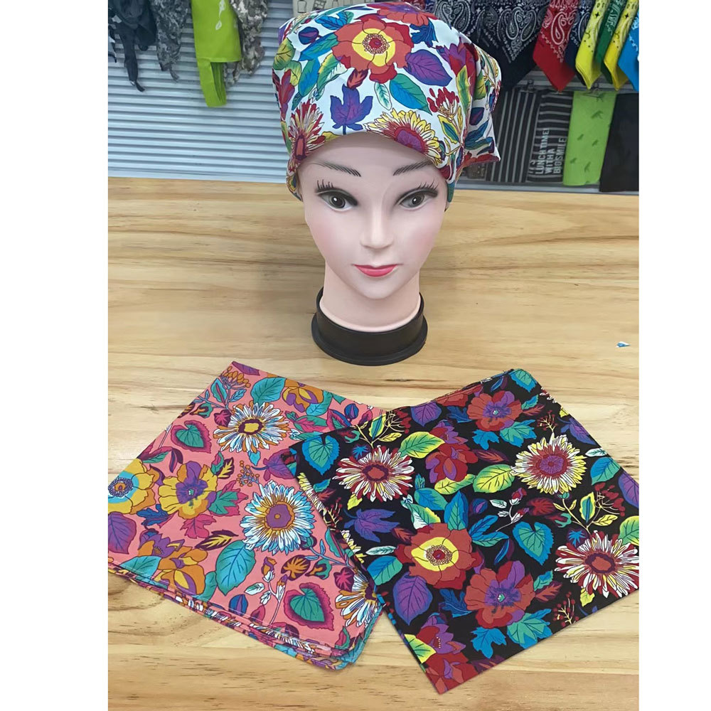 新品46cmコットンレディースプリントハンカチins植物花花花熱帯風コットンスカーフ汗拭きターバン
