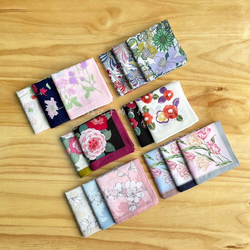 2023新品45cm純綿レディースプリントハンカチ60sコームコットン日韓系レディース角巾現品