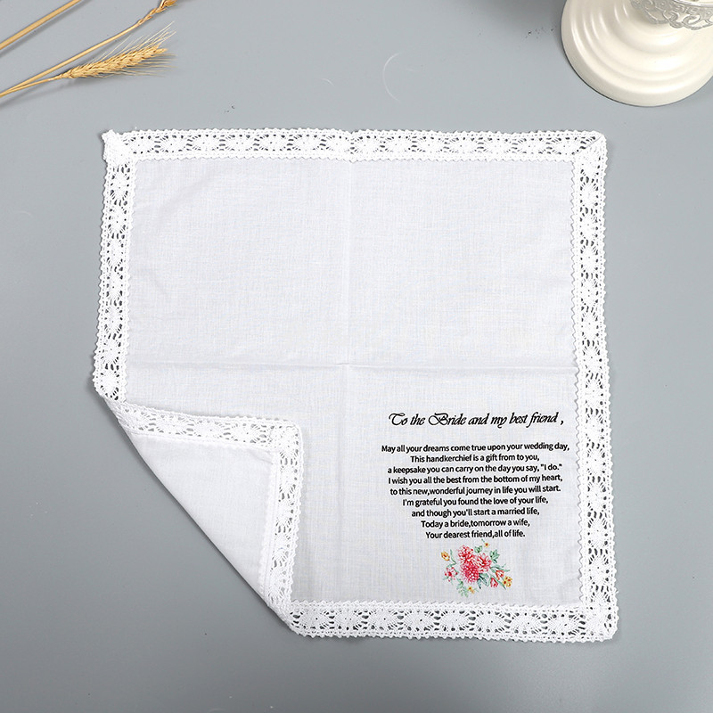 レースの辺の純綿の白いハンカチは加工して注文して刺繍してlogoを印刷することができます。