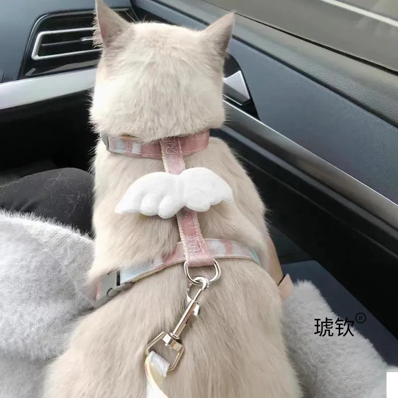 猫牽引ロープ、調節可能な猫散歩ロープ、かわいい羽、子猫のお出かけ専用ハーネス、ペット犬用品