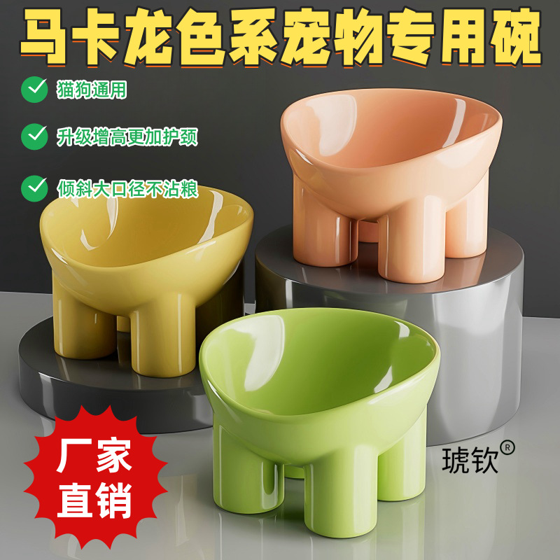 新しいペットボウル、マカロンカラーの象脚ネックボウル、高脚の斜めの飲み口、転倒防止犬ボウル、猫丼