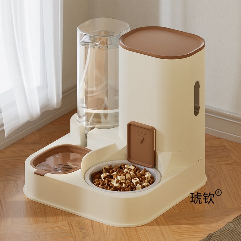 猫ボウル ダブルボウル 自動給水器 一体型セラミックキャットフードボウル 転倒防止 自動給餌器 犬ボウル キャットフードボウル