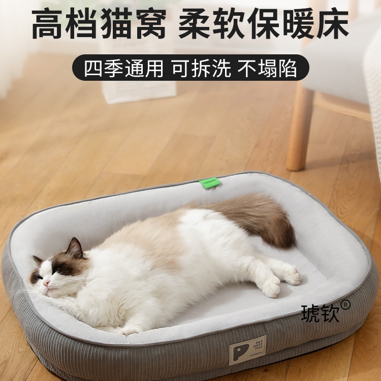 オールシーズン対応の猫の巣、取り外して洗える猫の睡眠マット、猫のベッド、子猫の冬用暖かい猫の巣ペットマット