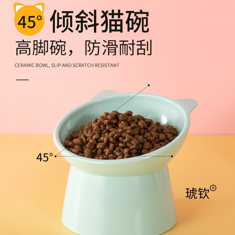 猫ボウル、かわいい、黒ずみ防止、傾斜した高脚、首の保護、家庭用猫ボウル、犬ボウル、飲料水ペットボウル、フードボウル、転倒防止