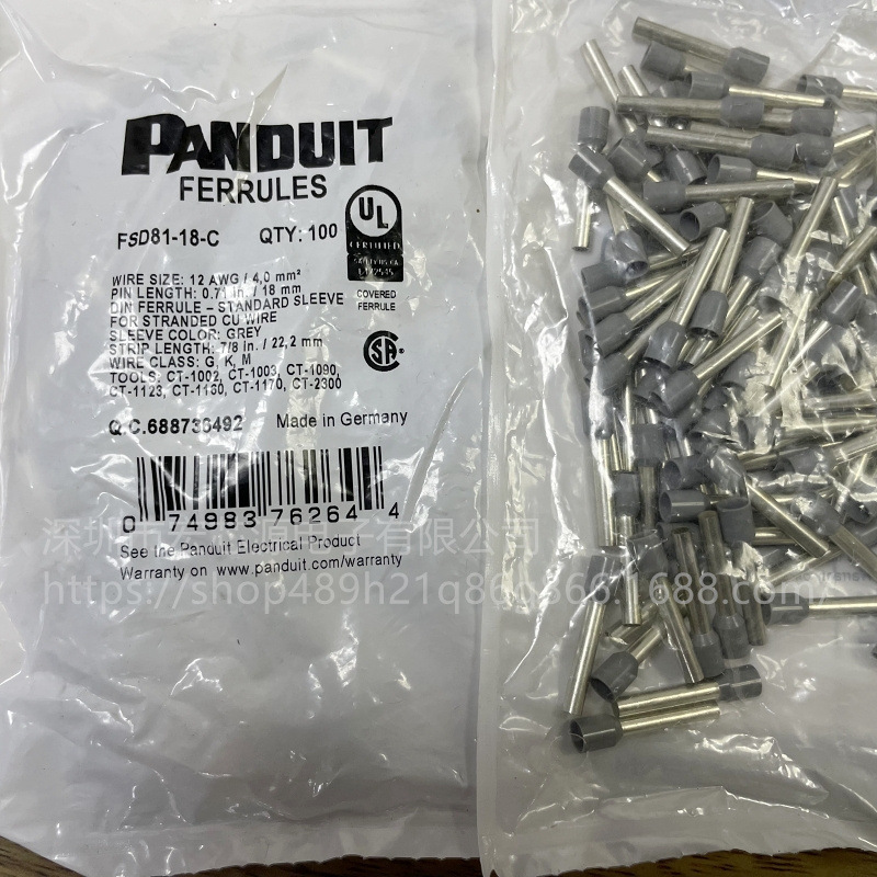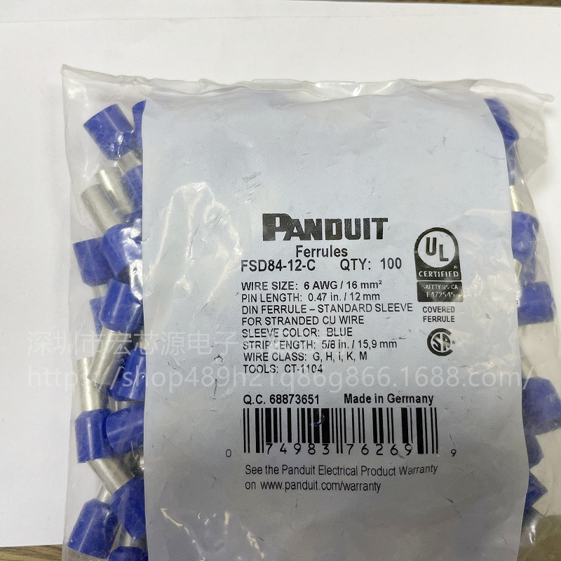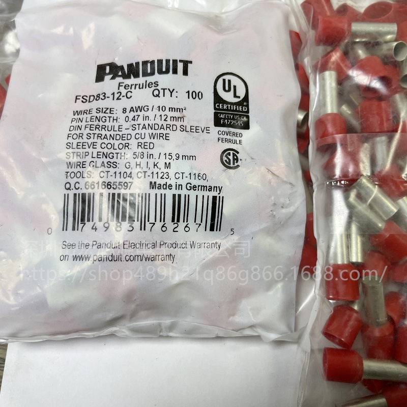 Panduit泛达 端子 FSD84-12-C 环箍端套管 单线配置 乙烯基 6AWG