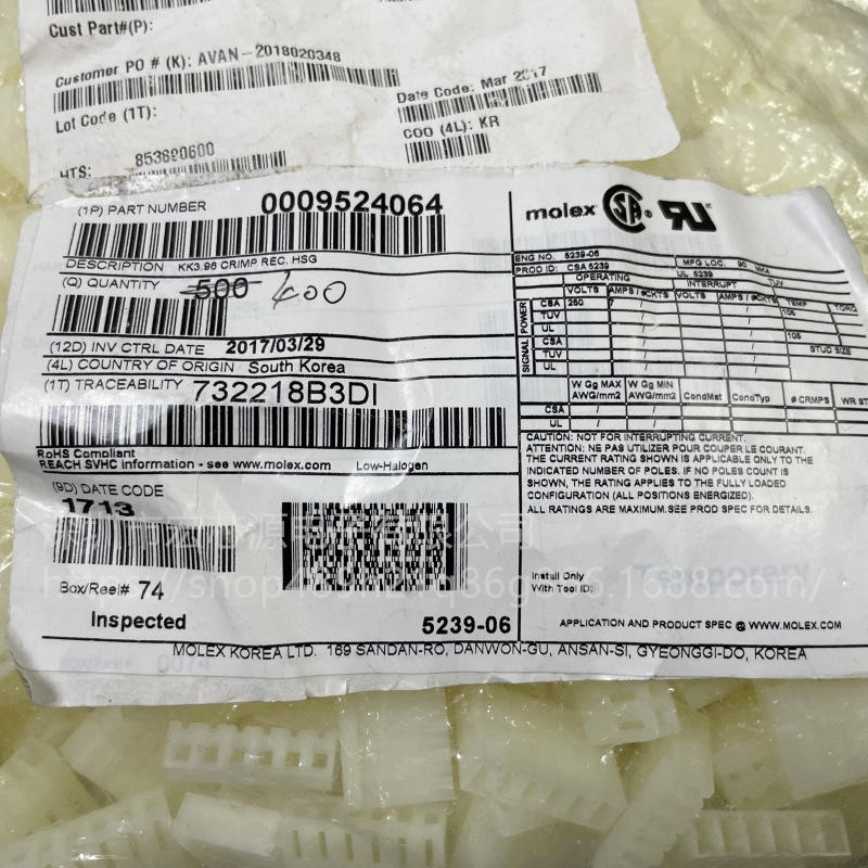 Molex莫仕0952-4064压线端子胶壳 3.96mm 1X6P
