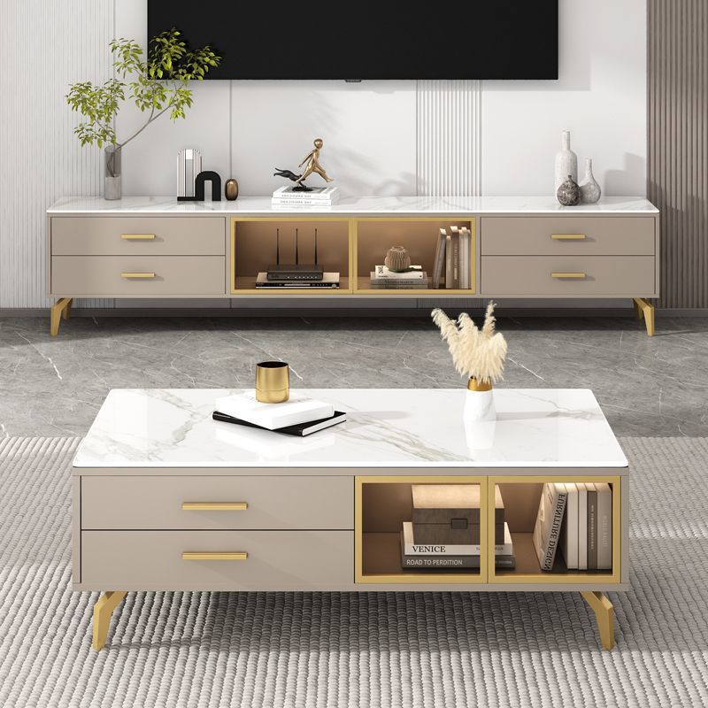 光沢のあるロックボードコーヒーテーブルテレビキャビネット組み合わせモダンシンプル格納式収納ホーム小さなアパートのリビングルームフロアm^