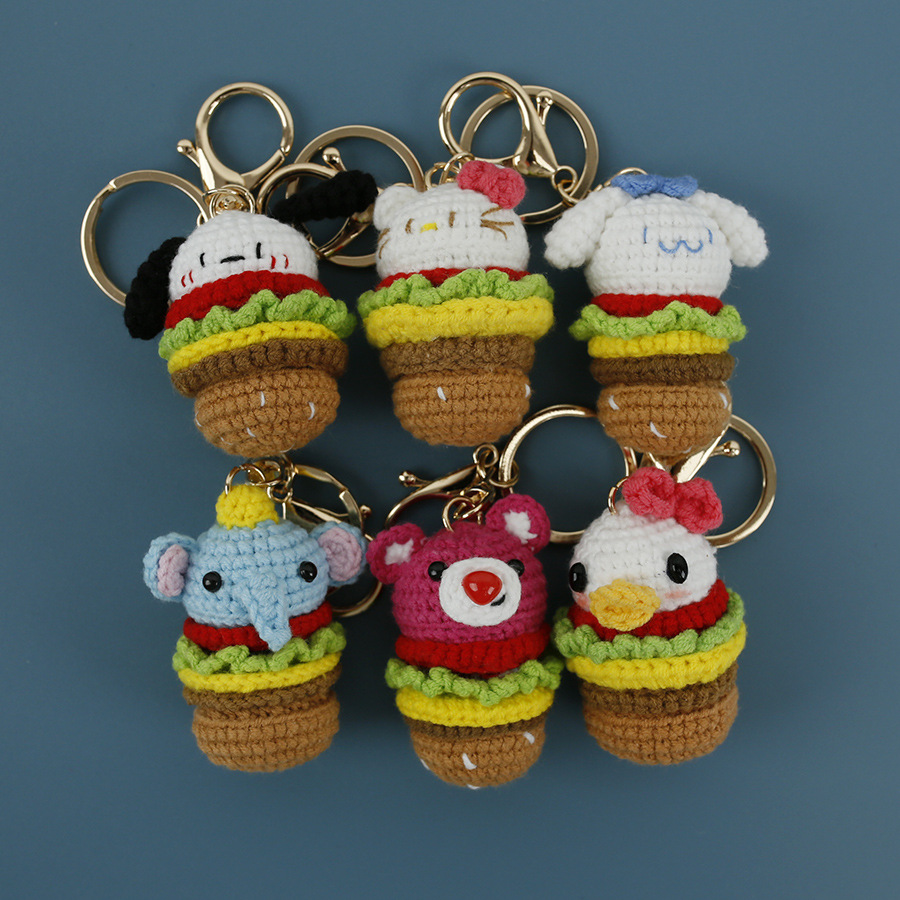 超萌えアニメ手作り動物ハンバーグペンダント美しい毛糸鉤織ハンバーグキーホルダー手作り完成品