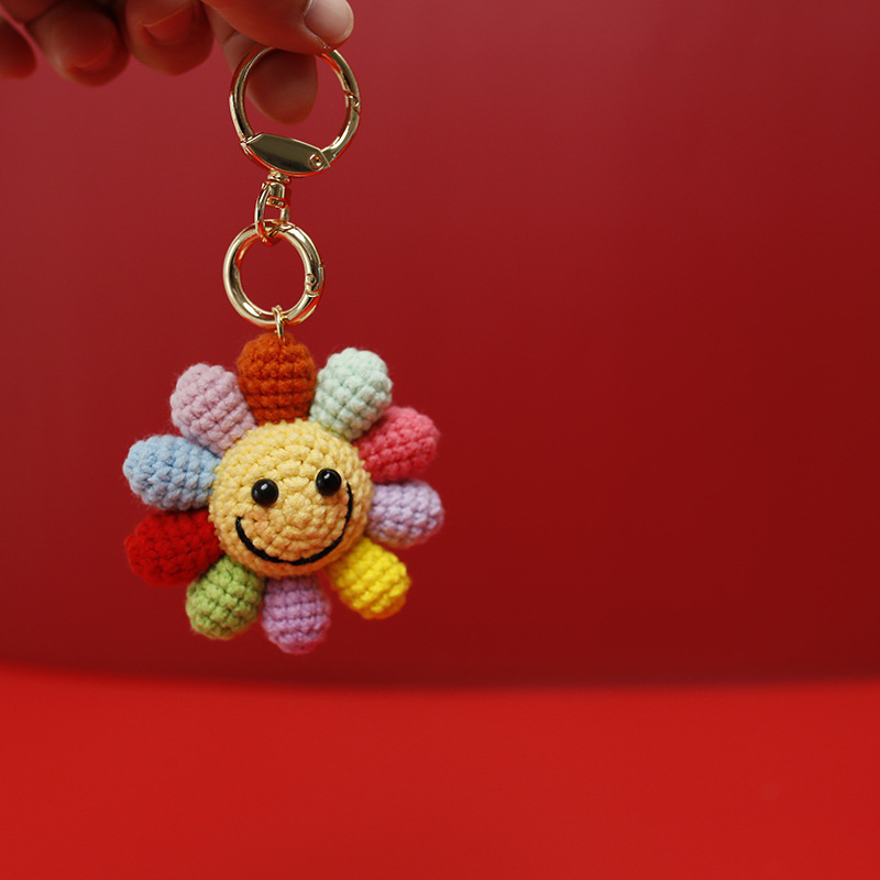 春節新作七色ひまわり手編みキーホルダー クリエイティブな毛糸かぎ針編み小物 完成品在庫あり