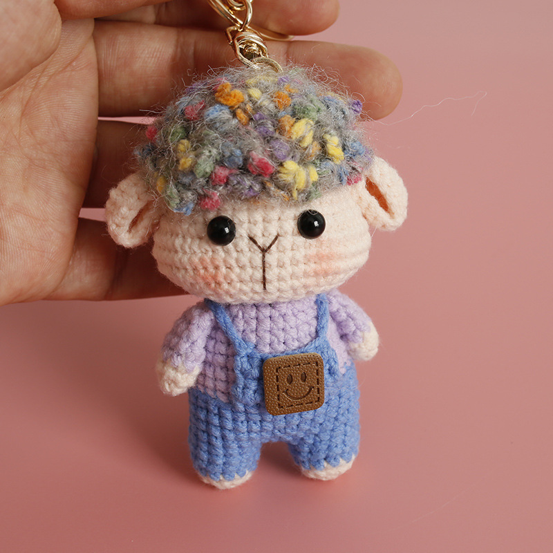 巻き髪羊手作りかぎ針編み人形創意毛糸かぎ針編み小羊ストラップ可愛い巻き髪羊手作完成品