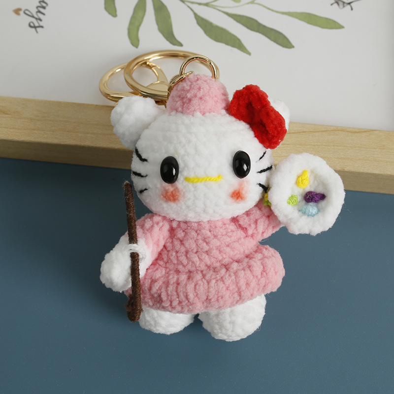超かわいい漫画の手編み画家キティ人形毛糸かぎ針編みかわいい猫ペンダント手作り完成品