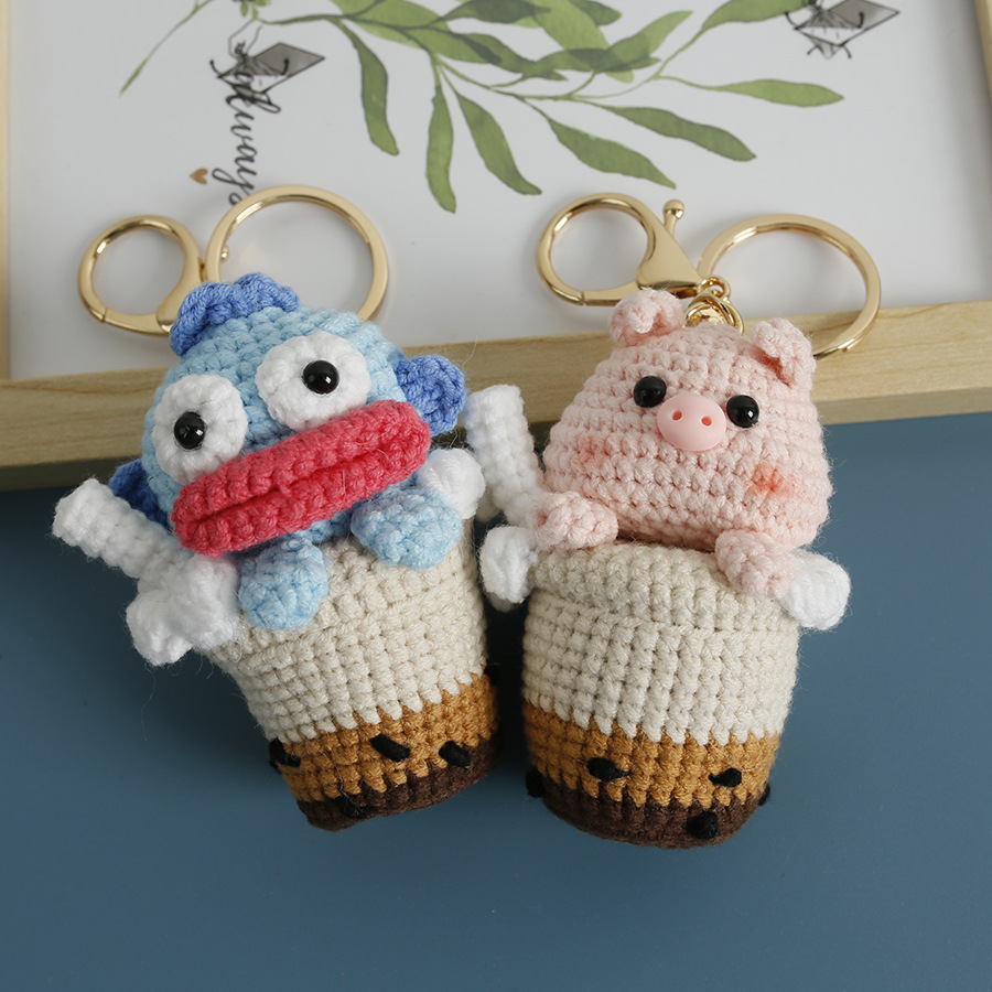 漫画かわいい手作り編みミルクティーシリーズのペンダント創意毛糸鉤織醜い魚のキーホルダー