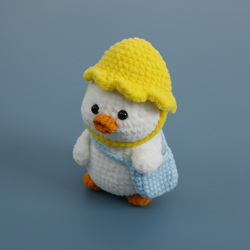 春のアヒルの手作りの綿糸は人形の編み物を編みます。
