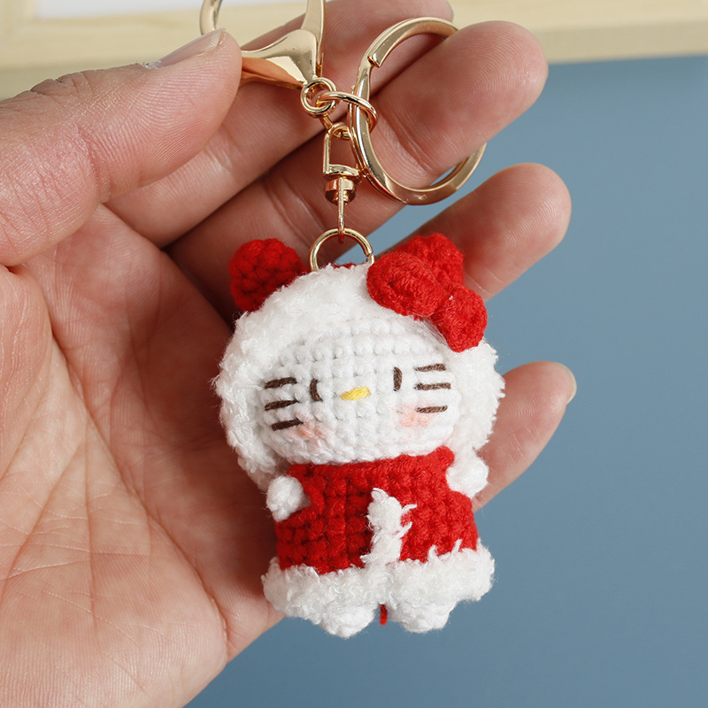 クリエイティブ手编みミニストラップ可爱い小さなキティキーホルダー毛糸かぎ针编みかばん饰り完成品