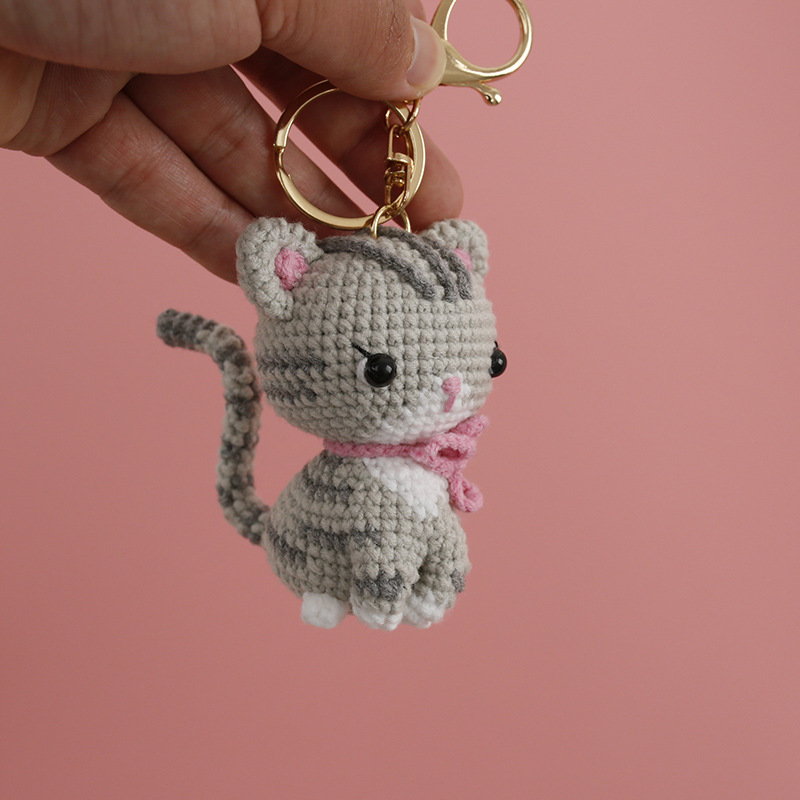 小さな猫の手編み人形ウールかぎ針編み動物ペンダント絶妙な手作り猫ペンダント