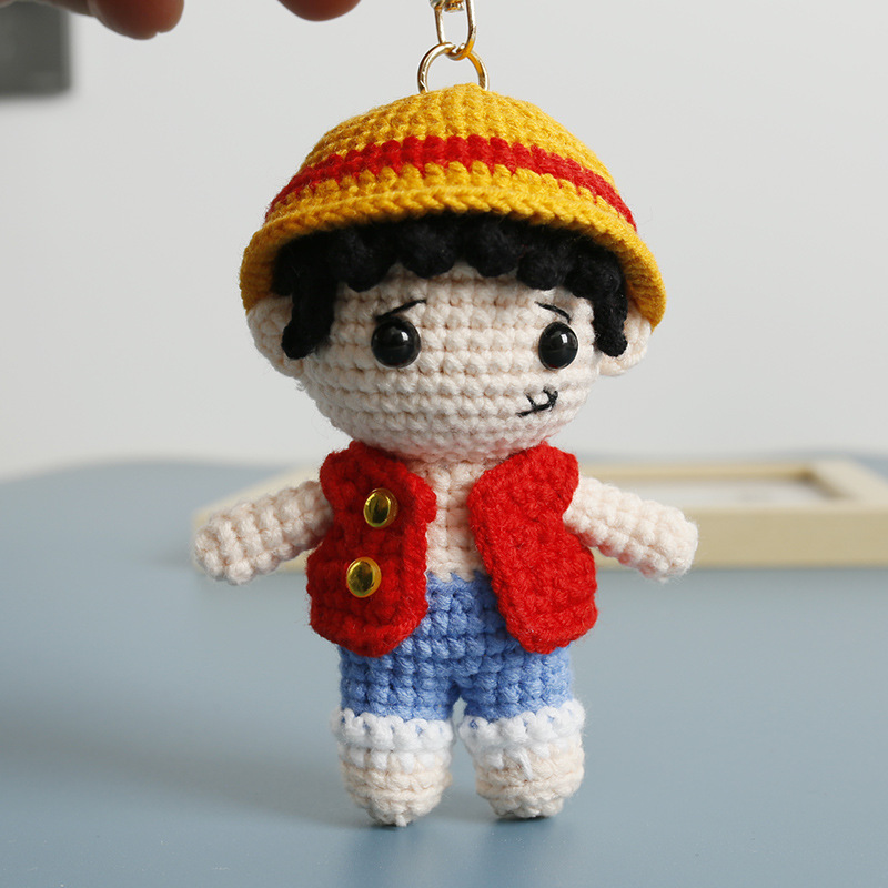 創意的な手編みアニメ人形の美しい毛糸のかぎ針編みの萌え版ルフィのストラップのニット人形の包み掛け