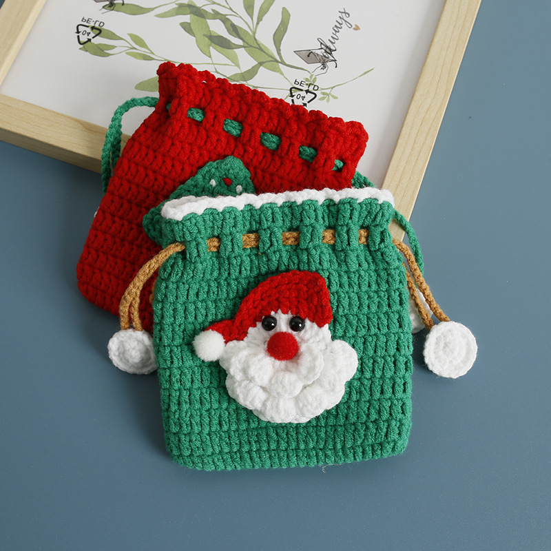 完成品鉤織クリスマス束口包イヤホンゼロ財布口紅包創意束ポケット祝日収納袋