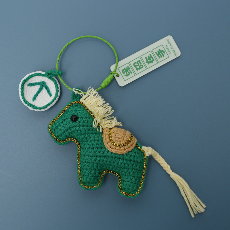 創意的な手編みのポニーストラップの宝のお母さんは行程を編みますか?小さい装飾の緑の馬は完成品を包みます。