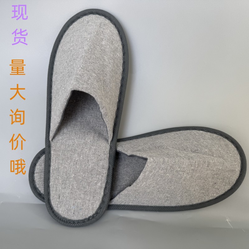 ホテル家庭用室内灰色使い捨てキャンバススリッパ6ミリ柳葉紋滑り止め底ホテルスリッパ現物