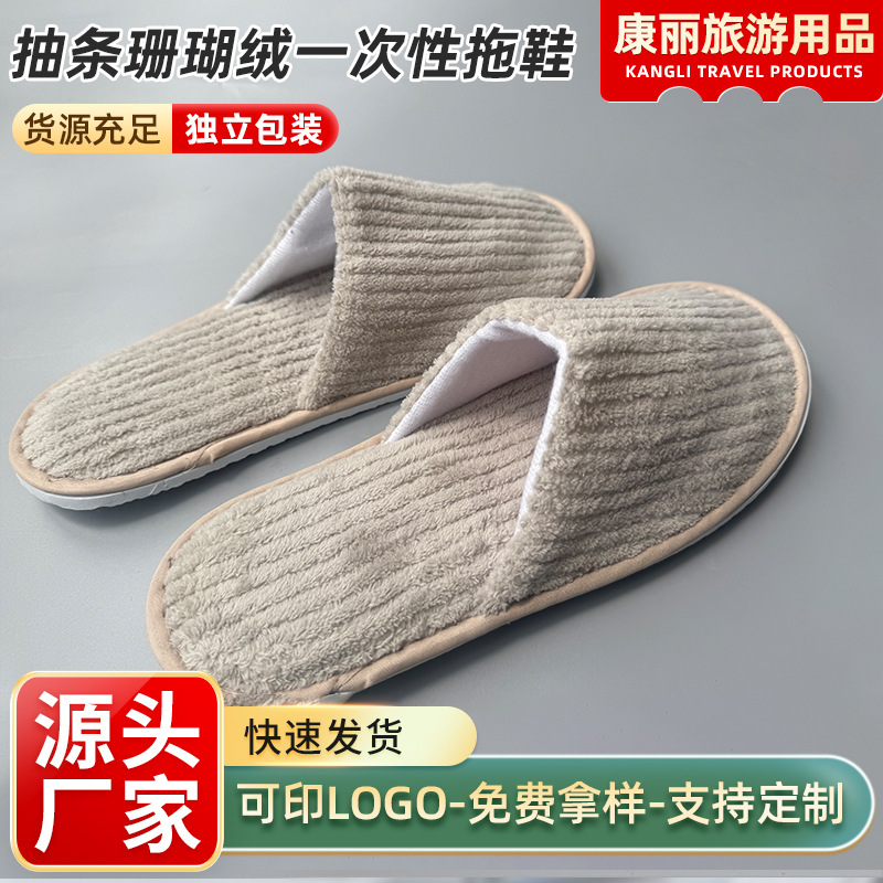 新しいホテル使い捨てスリッパコーラルベルベット 7 ミリメートル美白ノンスリップ柳の葉パターン底使い捨てスリッパ卸売