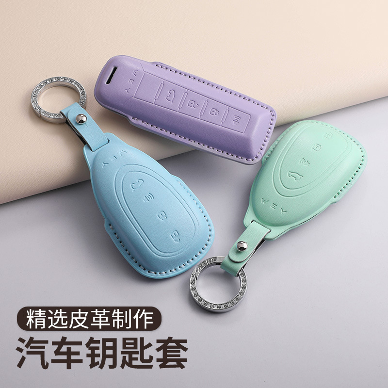 万里の長城魏派ブルーマウンテンヤギ革立体キーバッグ長城車のリモートコントロールキーホルダーに適しています