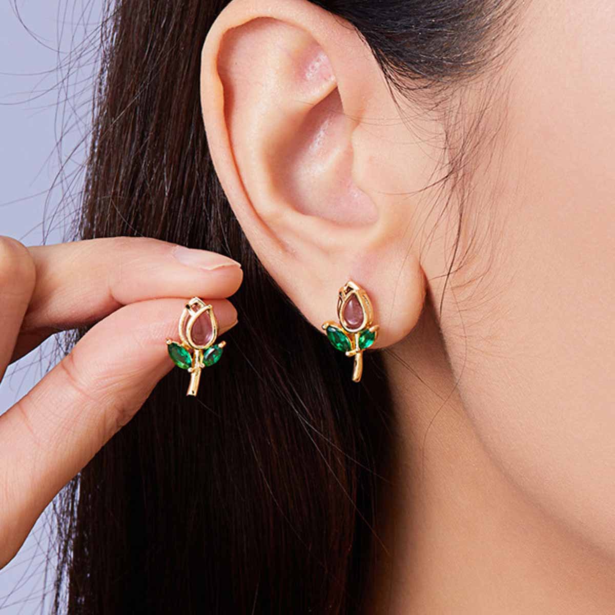 奇福の外国貿易の新型のチューリップのピアスの女性の小さい清新な花のピアスのイヤリングのファッション的な花はダイヤモンドの花を入れます。