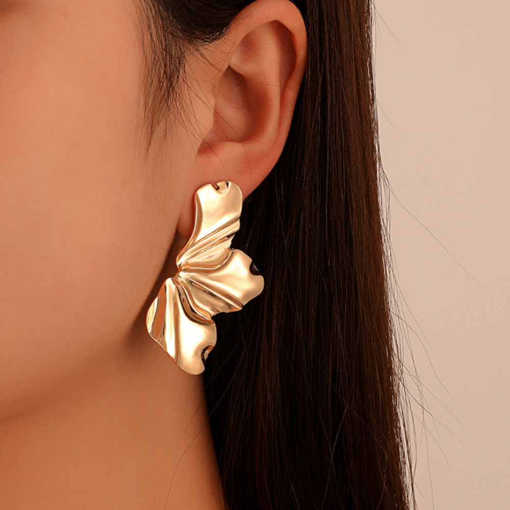 奇福美風シンプル葉ピアス冷たい風金属誇張イヤリングレトロ小衆不規則耳飾り女