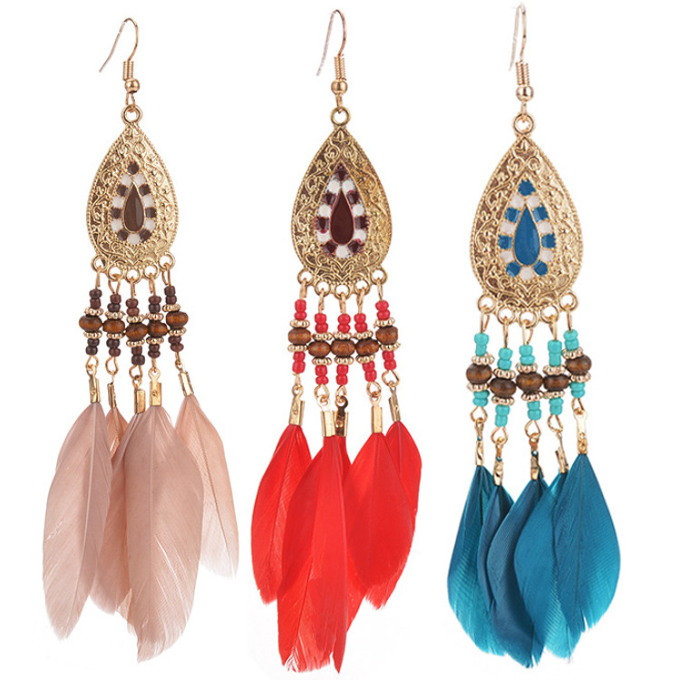 民族風のネックレスを誇張して欧米の豪華なビーズの羽のネックレスを組み合わせてカラーの米の玉のネックレスを配合します。