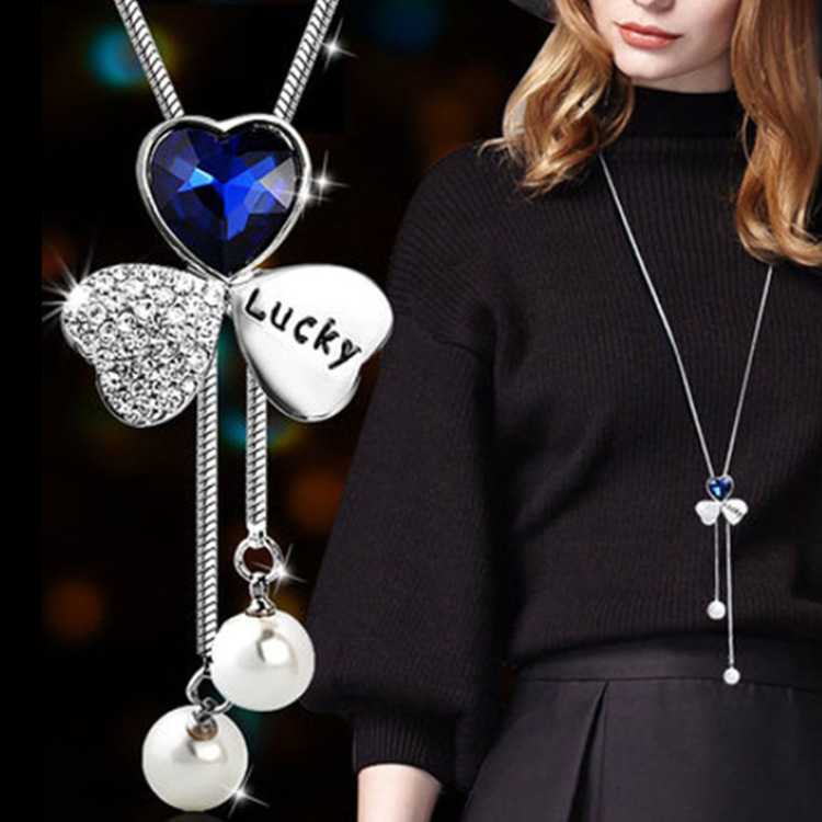 韓国の長いハート型の蝶結びのネックレスはファッション的な装飾のセーターのチェーンの秋冬の潮流を飾って女性の現物を飾ります。
