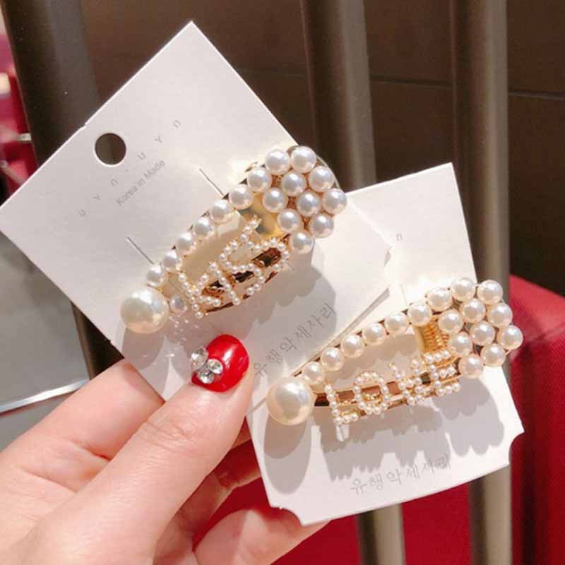 新商品の韓国のネットの赤いサイドは同じタイプのサイドを挟んで韓国版の簡単なアルファベットの真珠の髪飾りの学生の髪飾りを挟みます。