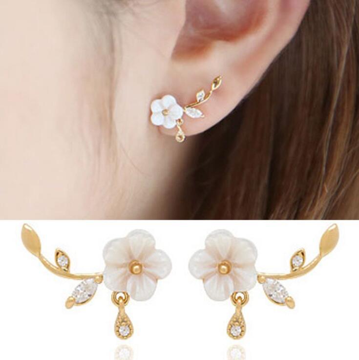 新しいファッション貝殻葉花ピアスイヤリング甘い白いジルコン枝ピアス