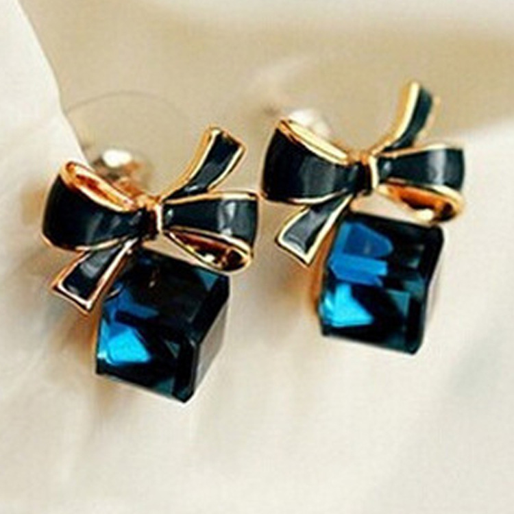 ファッションの韓国版の蝶結びの立方体のルービックキューブの水晶は銀のピアスの気質をめっきします。