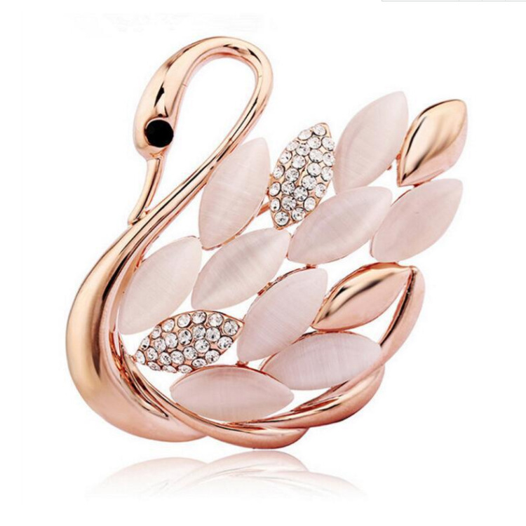 韓国のシルクのティッシュはピンの猫の目の石の白鳥のブローチを掛けます。