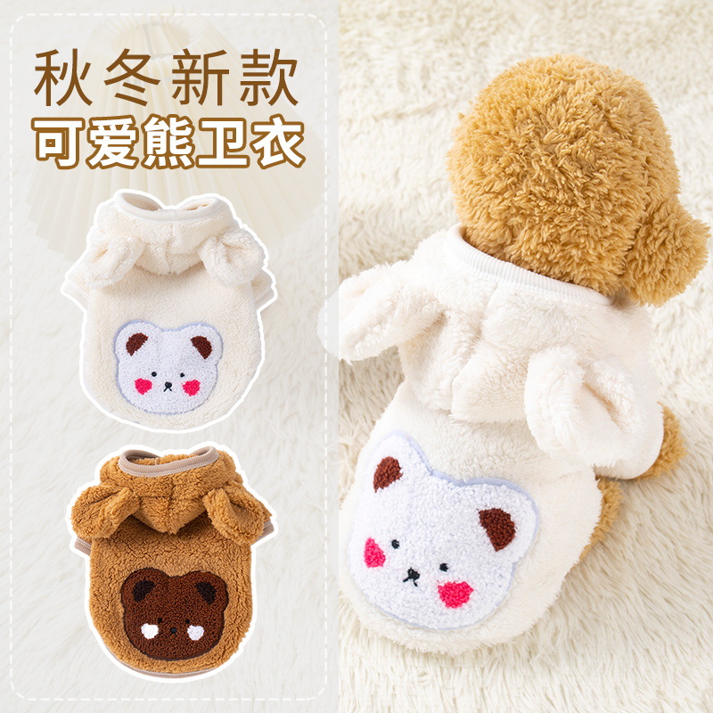 ペット犬服秋冬ベルベット厚手フード付きベアー四足服テディ比熊小型犬ペット服