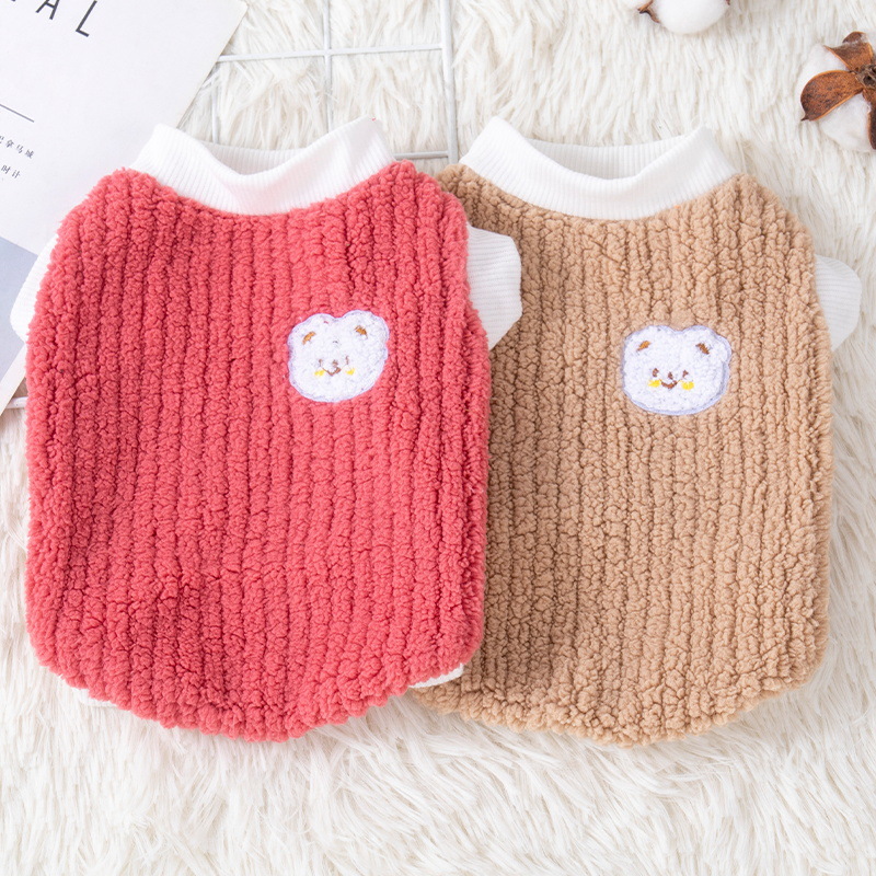 ペットの犬の冬の服の刺繍の熊の絨毯のベストの博美西のハイランドのチワワの小型の乳の犬の保温の秋の金