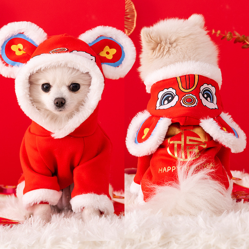竜年の犬の服は新年に新年を祝って、テディのシェナリーの博美の猫の保温の唐服の綿入れの冬を厚くします。