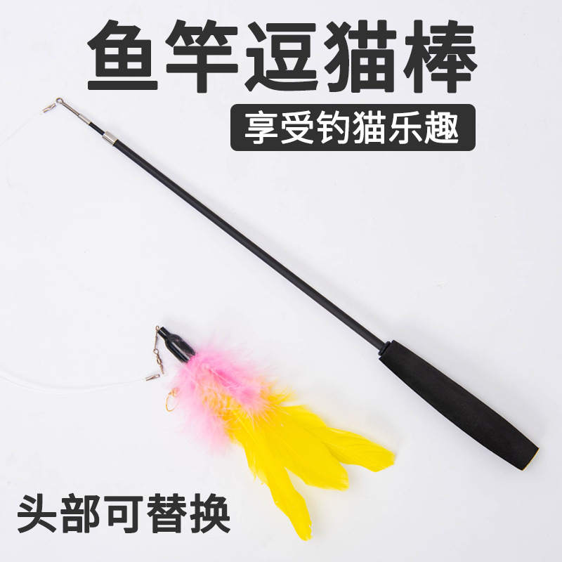 羽の猫の棒の伸縮できる猫のおもちゃのシングルセットの羽の鈴の頭は猫の棒の卸売りに交替することができます。