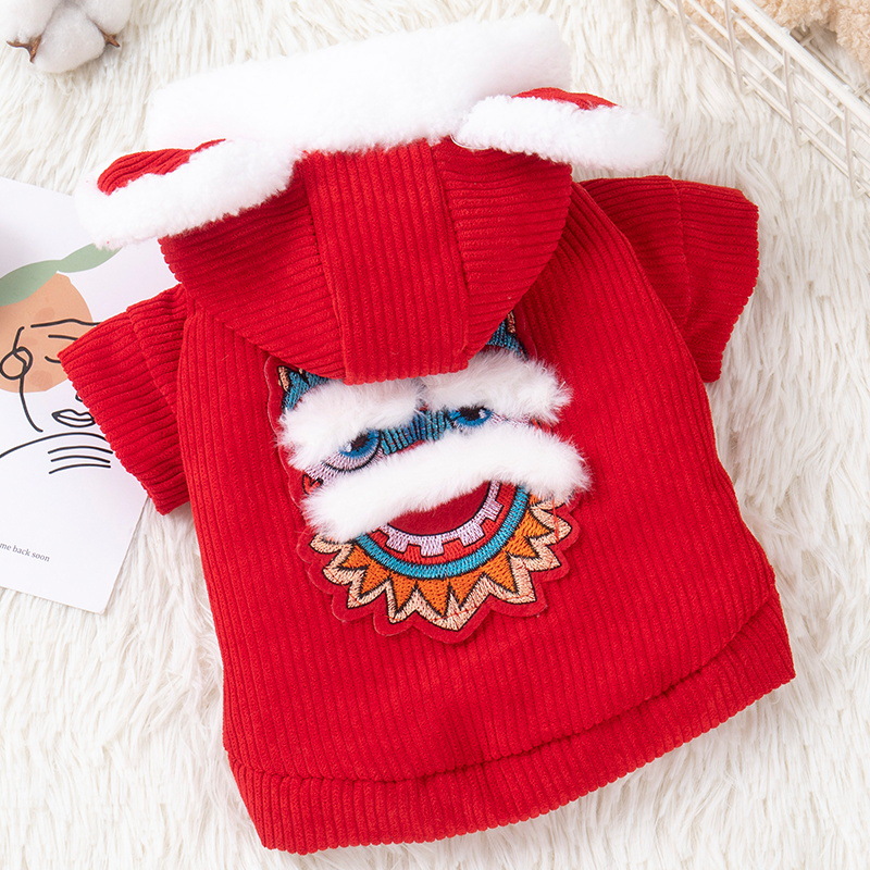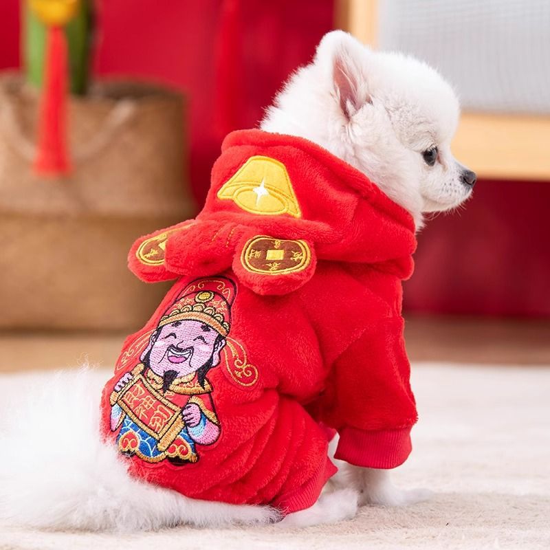 犬の服秋冬のお祝い新年にベルベットの金持ちの神がペットのテディ猫の小型犬の服に変身した