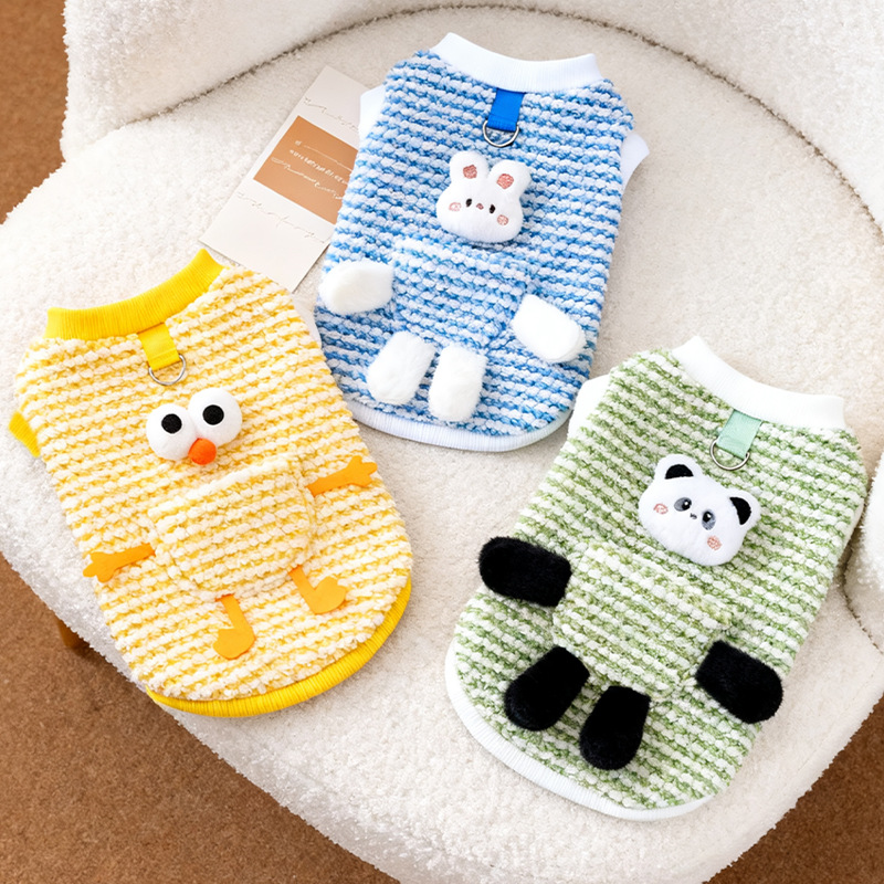 秋と冬のペット服漫画かわいい動物牽引可能な二本足フリースプルオーバーラウンドネックスウェットシャツ猫と犬のトップス