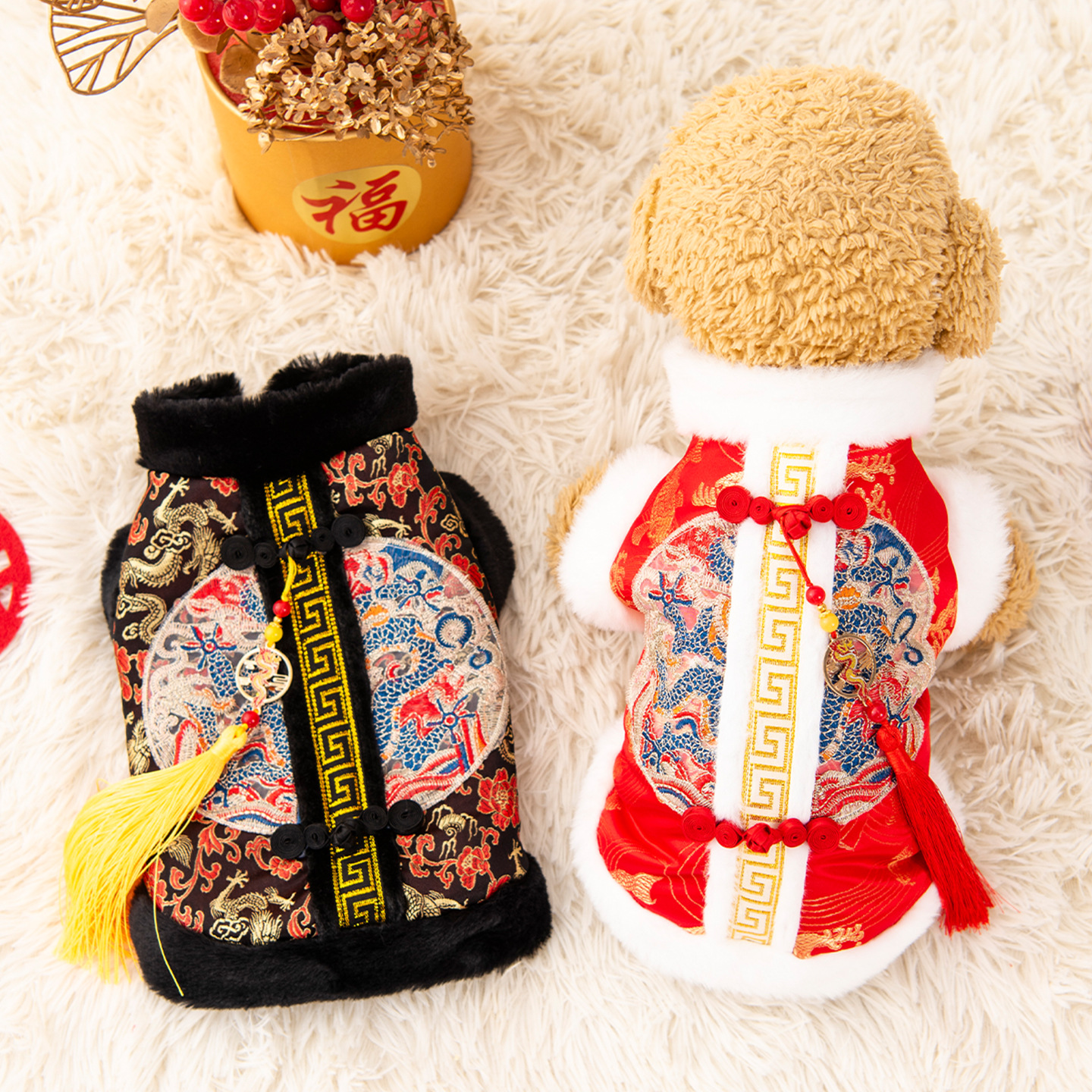 [Mu Xin] 新年リトルフーバオ犬猫秋と冬厚く暖かい刺繍入り綿コート春祭り黒と赤