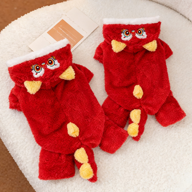 新年用の犬服、冬用の暖かい四本足の子犬服、ビションテディ猫の新年服、冬の子猫の綿の服