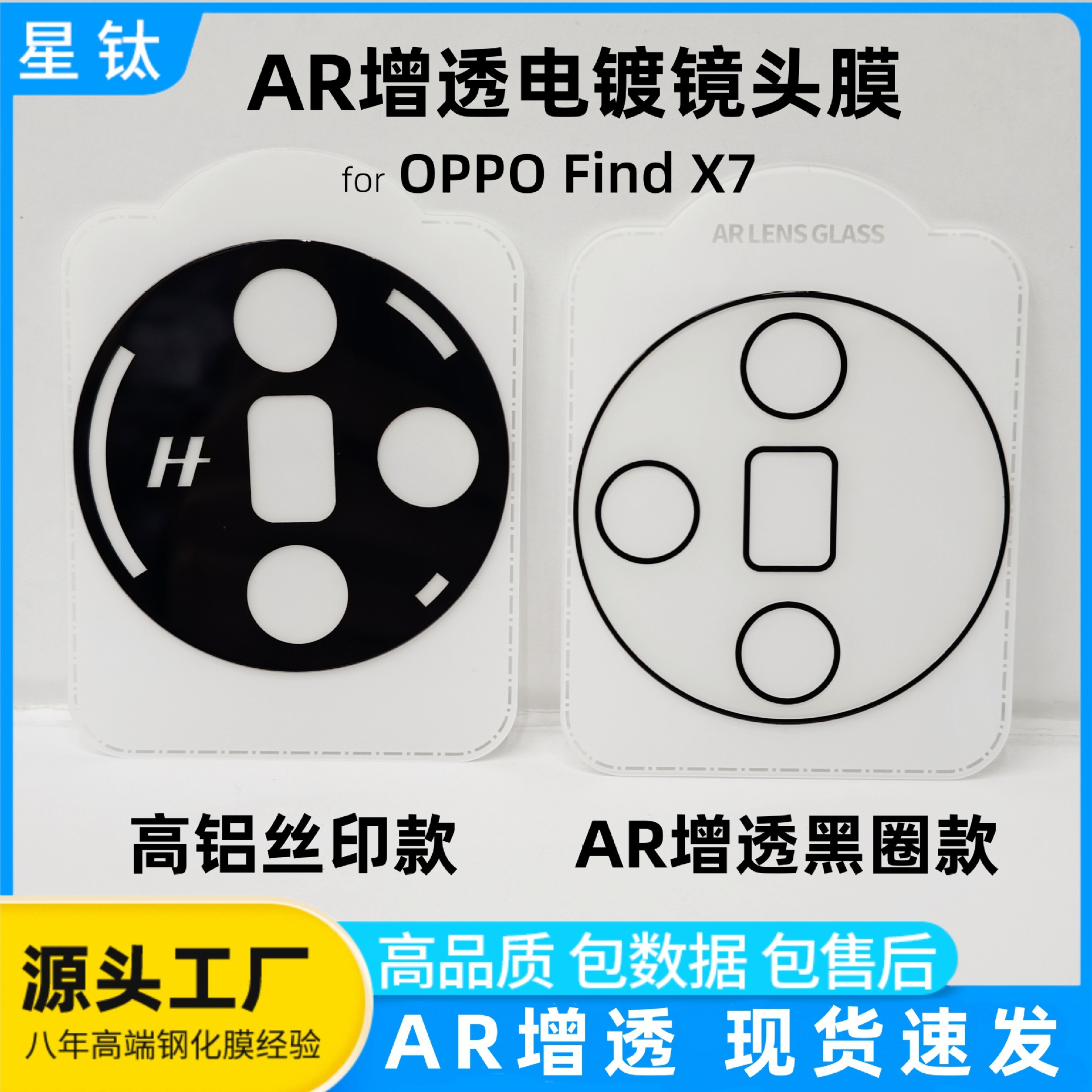 FindX7レンズフィルムAR増透シルク印刷黒輪防眩度メッキFind x7 ultraレンズ保護フィルムを適用します。